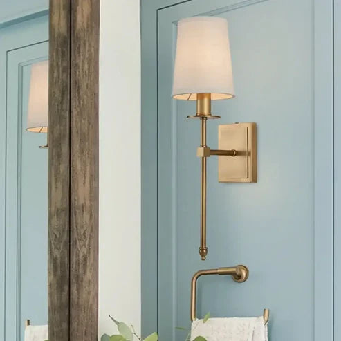 Elevate your interior with the Elegant Rustic Wall Sconce. Featuring a classic design with a high-quality white textile lampshade, this piece adds a sophisticated touch to any room, blending effortlessly with rustic and modern décor.