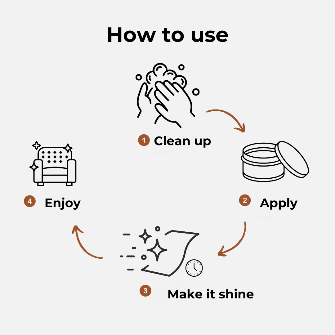 EverGloss dives deep into leather and wood, restoring their natural luster and richness. Its advanced formula rejuvenates your items, creating a protective barrier against stains, splashes, and everyday wear, ensuring your pieces remain beautiful for years.
