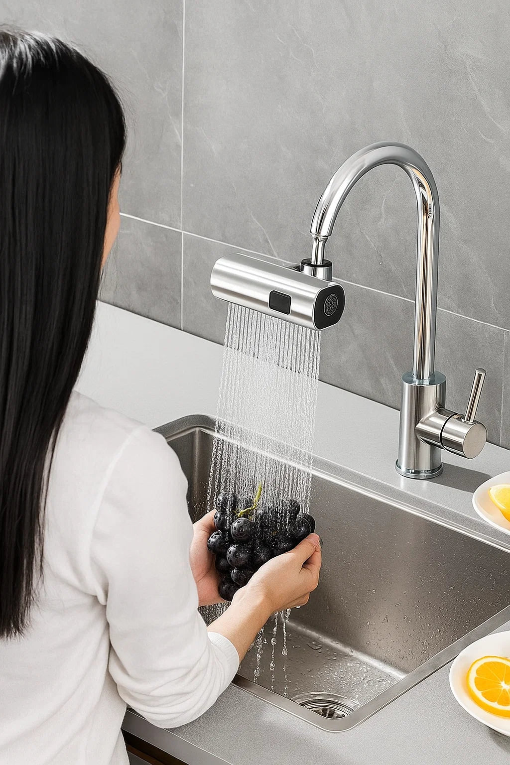 Tired of splashes and stiff spouts? With this waterfall faucet, switch between gentle rain, powerful spray, or steady flow , all with a 360° swivel for total freedom, trusted by thousands of home chefs.